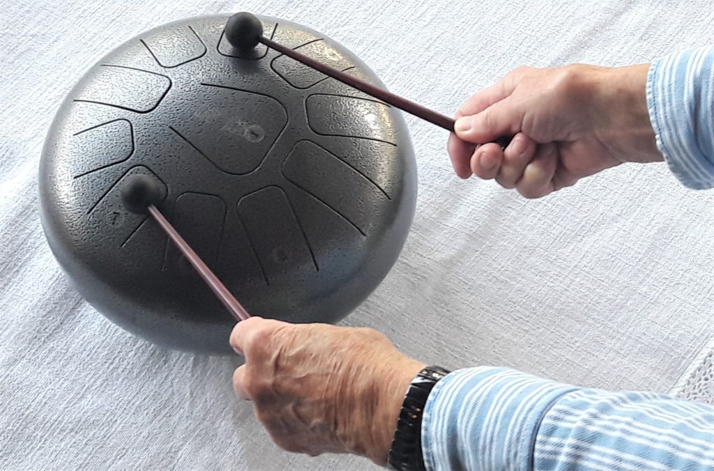 Les aînés (selon la situation de chacun) sont invités à manipuler quelques instruments de musique et autes objets qui font plaisir aux sens.